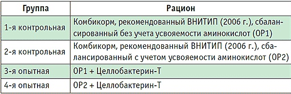 учета усвояемости аминокислот (табл. 1). В рацион третьей и четвертой опытных