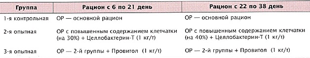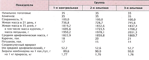 с суточного до 35 дневного возраста по схеме, представленной в таблице 1. В