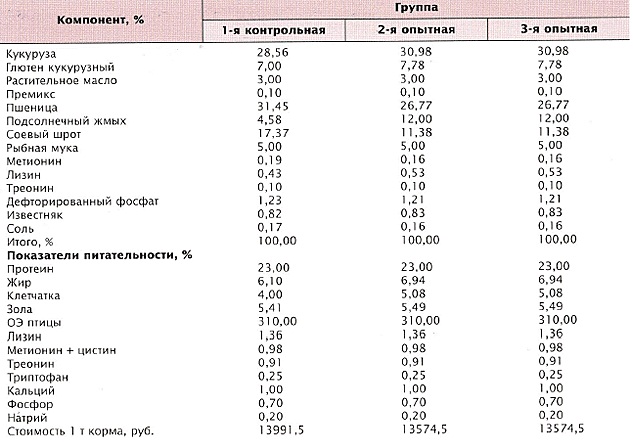 опытных групп повышали благодаря увеличению ввода подсолнечного жмыха.